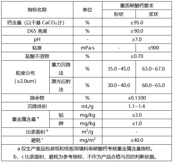 填料級碳酸鈣的技術指標要求(QB/T2811-2019造紙用碳酸鈣)
