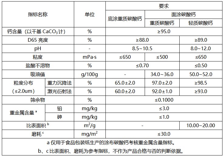 涂布級碳酸鈣的技術指標要求(QB/T2811-2019造紙用碳酸鈣)