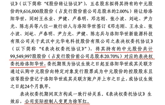 公告顯示,8月25日,洛陽華世與中元股份鄧志剛、王永業、張小波、劉屹、尹力光五名股東簽署了《股份轉讓協議》,受讓其持有的中元股份2%的股份;同時,包括前述五名股東在內的八位一致行動人(中元股份實控人)與洛陽華世簽訂《表決權委托協議》,將其持有的發行股份前中元股份20.70%股份對應的表決權委托給洛陽華世行使。