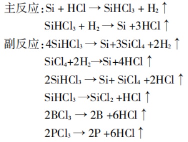 流化床法制造多晶硅需要用到流化床反應(yīng)器,具體反應(yīng)過(guò)程如下:將SiHCl3和H2由底部注入到流化床反應(yīng)裝置中,在加熱器和預(yù)熱氣體的雙重作用下把床層溫度提高到反應(yīng)所需溫度。硅烷氣體通過(guò)被加熱的硅顆粒床層時(shí)分解生成硅和氫氣,硅在硅顆粒表面沉積,硅顆粒長(zhǎng)大到一定尺寸后形成產(chǎn)品,從反應(yīng)器底部取出。在流化床法制備多晶硅過(guò)程中,可通過(guò)反應(yīng)氣體的進(jìn)口速率調(diào)節(jié)系統(tǒng)流態(tài)化和氣體停留時(shí)間,從而提高轉(zhuǎn)化率。