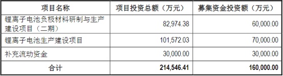 具體來看,鋰離子電池負極材料研制與生產建設項目(二期)實施主體為易成新能子公司青海天藍新能源材料有限公司(簡稱青海藍天),項目計劃投資總額8.3億元,使用募集資金6億元,建設期預計為2年。
