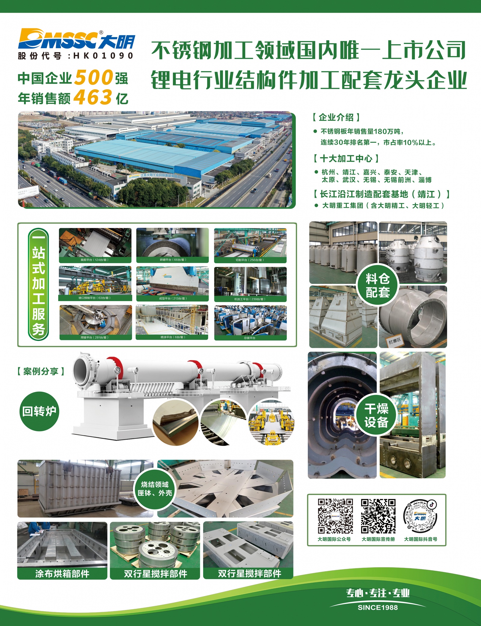 大明成立于1988年,是國內(nèi)金屬加工領(lǐng)域的龍頭和領(lǐng)先的高端制造配套服務企業(yè),具備材料加工、零部件制作和成品制造、專業(yè)技術(shù)服務等全流程產(chǎn)業(yè)鏈。目前,大明已在全國建立10家加工服務中心和長江沿江制造服務基地(靖江),客戶覆蓋眾多行業(yè)的頭部企業(yè)。2010年,大明國際(01090.HK)在香港聯(lián)交所主板上市;2021年,大明實現(xiàn)不銹鋼產(chǎn)品銷量183萬噸,碳鋼產(chǎn)品銷量312萬噸,銷售收入463億元。