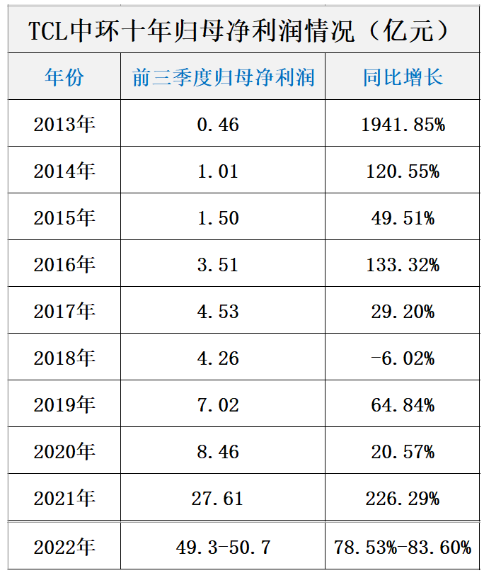 中國粉體網(wǎng)訊 近日,TCL中環(huán)發(fā)布業(yè)績預(yù)告,2022 年前三季度預(yù)計實現(xiàn)歸屬于上市公司股東的凈利潤49.3億元~50.7億元,同比增長 78.53%~83.60%,再創(chuàng)史上最高盈利規(guī)模。而2022年TCL中環(huán)大概率將連續(xù)七年刷新年度盈利記錄。