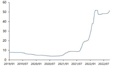 以鋰電正極原材料碳酸鋰為例,9月份,碳酸鋰價格突破50萬/噸關(guān)口。據(jù)統(tǒng)計,2020年9月30日,電池級碳酸鋰現(xiàn)貨價格是4萬元/噸。兩年之后,這一價格已經(jīng)飆升至50萬元/噸以上,漲幅超十多倍。