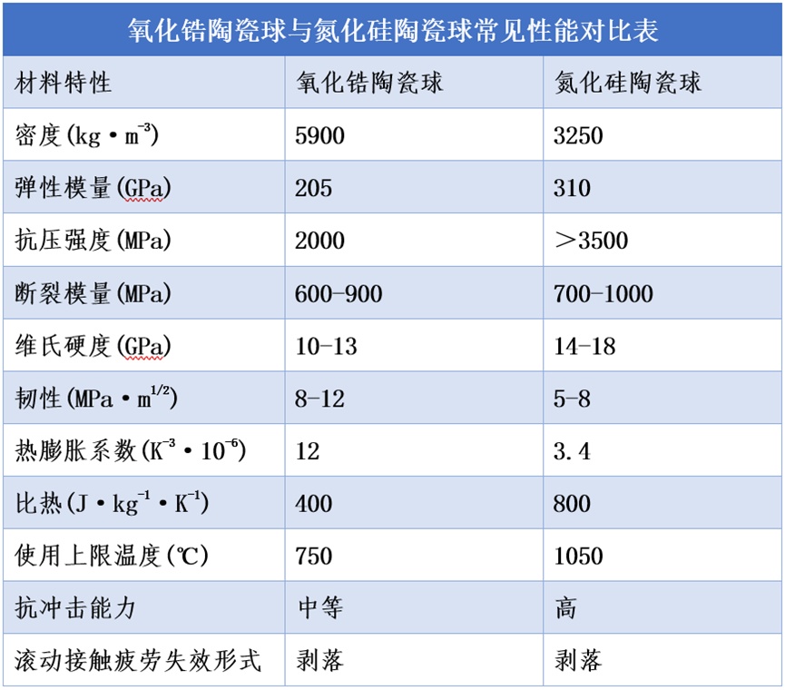 ▲氧化鋯陶瓷球與氮化硅陶瓷球常見性能對比表