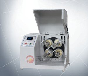 輕型滾筒式球磨機工作時,筒體內的研磨介質和物料一起隨筒體轉動提升到一定高度,由于重力作用而脫離筒壁沿拋物線下落,研磨介質和物料在研磨罐內高速翻滾,對物料產生強力剪切、沖擊、碾壓達到粉碎、研磨、分散、乳化物料的目的。