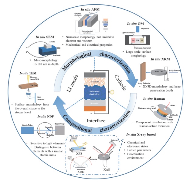 圖1固態鋰電池電極過程的原位表征技術示意圖