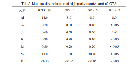 美國的尤尼明IOTA 系列高純石英砂主要質量參數