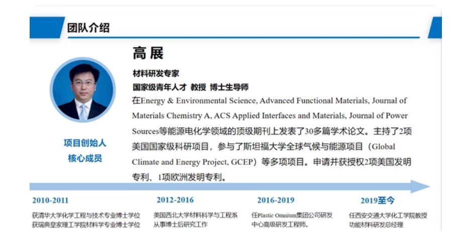 該項目創始人高展是西安交通大學化工學院教授,材料研發專家,國家級青年人才,博士生導師,項目團隊專業從事無機非功能粉體研發及器件開發的新型先進材料,以獨家制粉技術、粒徑均一、減少粉體團聚、擁有一流技術人才資源、具有材料產業化核心技術團隊。