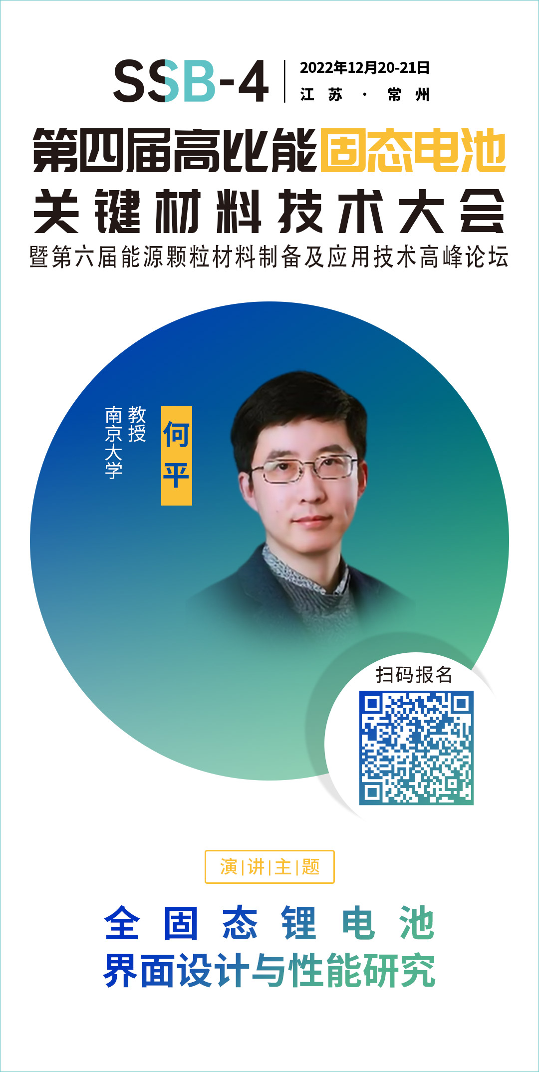 針對固態(tài)電池相關(guān)的技術(shù)、材料、市場及產(chǎn)業(yè)等方面的問題,中國粉體網(wǎng)將于12月20-21日在常州舉辦第四屆高比能固態(tài)電池關(guān)鍵材料技術(shù)大會。為致力于固態(tài)電池技術(shù)開發(fā)的企業(yè),科研院校,以及電動車、儲能、特種應用等終端企業(yè)提供信息交流的平臺,開展產(chǎn)、學、研合作,共同推動行業(yè)發(fā)展。屆時,南京大學何平教授將作題為《全固態(tài)鋰電池界面設計與性能研究》的報告。報告將對近年來何平教授課題組針對固態(tài)電池普遍存在的科學問題所開展的固-固界面組成、結(jié)構(gòu)設計和輸運機制的研究成果進行介紹,包括無碳無粘結(jié)劑的鋰合金固態(tài)負極,金屬鋰表面SEI層原位構(gòu)筑,固-固界面的限域溶解化學機制,固-固界面空間電荷層對鋰離子輸運特性影響的觀測以及固-固界面光熱增強效應等。