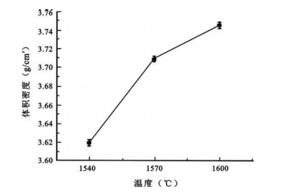 (2)燒結溫度對氧化鋁陶瓷的體積密度、吸水率和氣孔率均有很大影響,溫度越高,體積密度越大,吸水率和氣孔率越小。