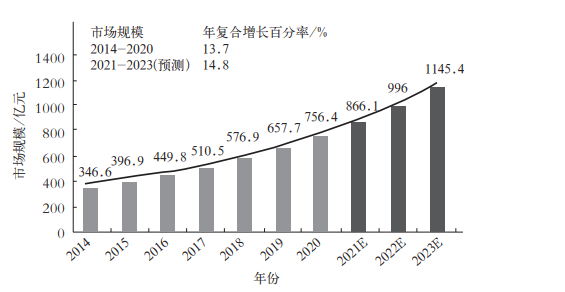 數據顯示,我國電子陶瓷市場規模從 2014年的 346.6億元增長至2020年的 756.4億元,年復合增長率達 13.7%,電子陶瓷元器件總體需求處于上升發展期。