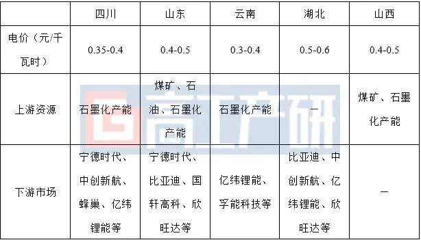 2020-2022年負極材料擬新建產能規模排在前五的省份是四川、山東、云南、湖北、山西,合計近400萬噸,主要原因是: