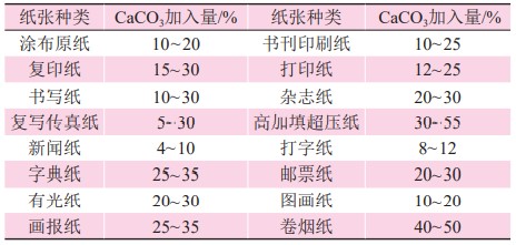碳酸鈣在紙張中作為填料主要有以下目的。填料分散于漿料纖維間將空隙填充,改善紙張的不透明度、白度等光學性質;改進紙張的吸油墨性,使紙張具有更好的印刷適性;滿足紙張某些特殊性能要求,如提高紙張的導電性、耐熱性等;減少纖維原料的使用,降低生產成本;填料具有大的比表面積,有助于克服樹脂障礙。