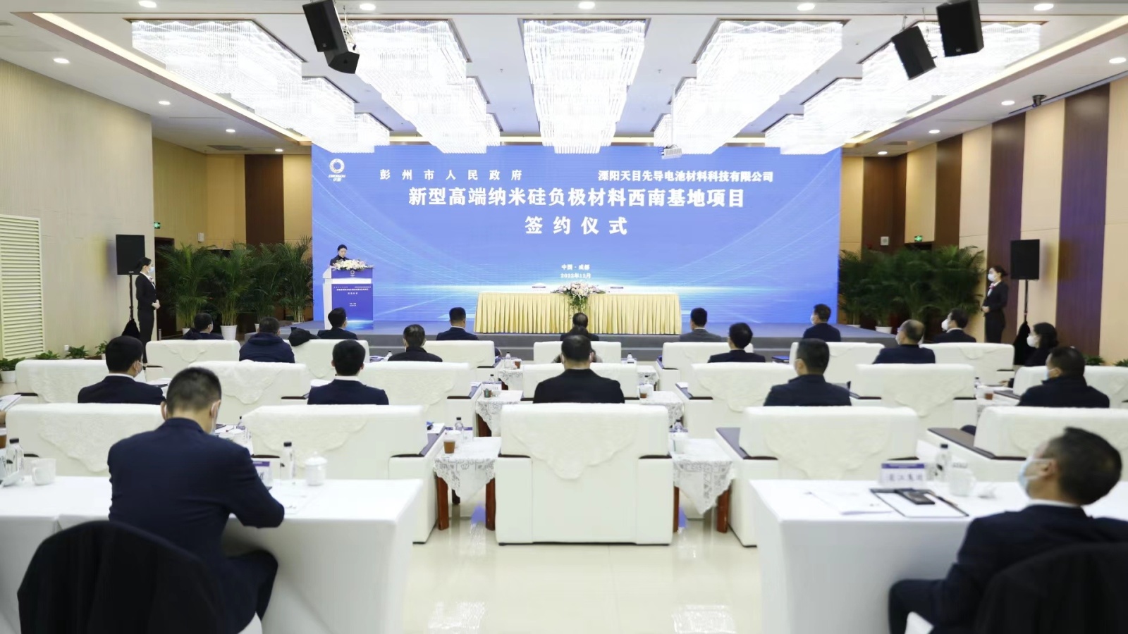 中國粉體網訊 12月12日,由成都市投資促進局、成都市經濟和信息化局指導,中共彭州市委、彭州市人民政府主辦的“天目先導新型高端納米硅負極材料西南基地項目”簽約儀式在成都彭州市隆重舉行。此次簽約總投資達50億元,擬建設年產3000噸高端納米硅材料、10萬噸高端硅基負極材料和3萬噸新型納米硅材料西南生產基地,項目達產后預計年產值約90億元,預計年稅收約5億元。成都市委常委、組織部部長、社治委主任鄧濤出席活動并見證簽約。