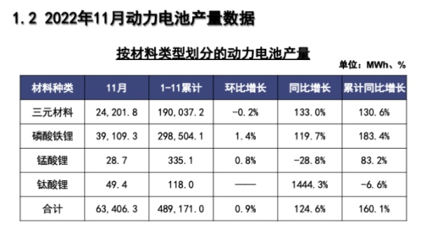 2022年11月動力電池數據公布 產量63.4GWh、同比增長124.6%
