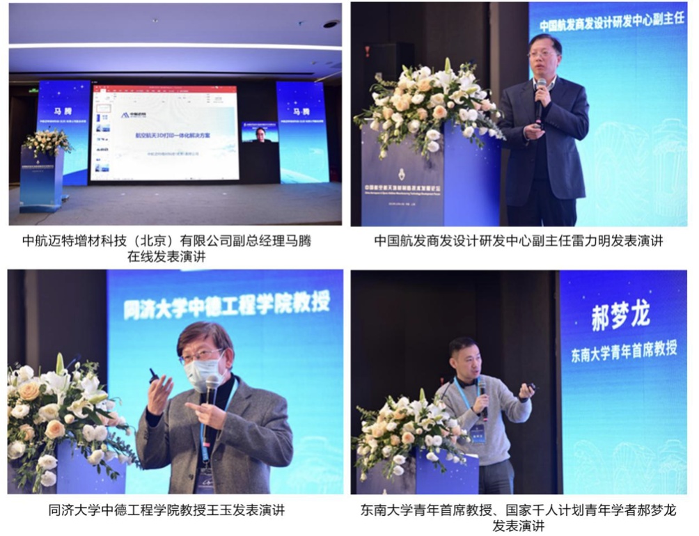 本次論壇邀請了上海航天設備制造總廠有限公司創新中心主任趙凱,上海遠鑄智能技術有限公司航空航天行業經理袁奧杰,華中科技大學教授、武漢天昱智能制造有限公司首席科學家張海鷗,中航邁特增材科技(北京)有限公司副總經理馬騰,中國航發商發設計研發中心副主任雷力明,同濟大學中德工程學院教授王玉,東南大學青年首席教授郝夢龍等專家學者就相關主題作了報告。