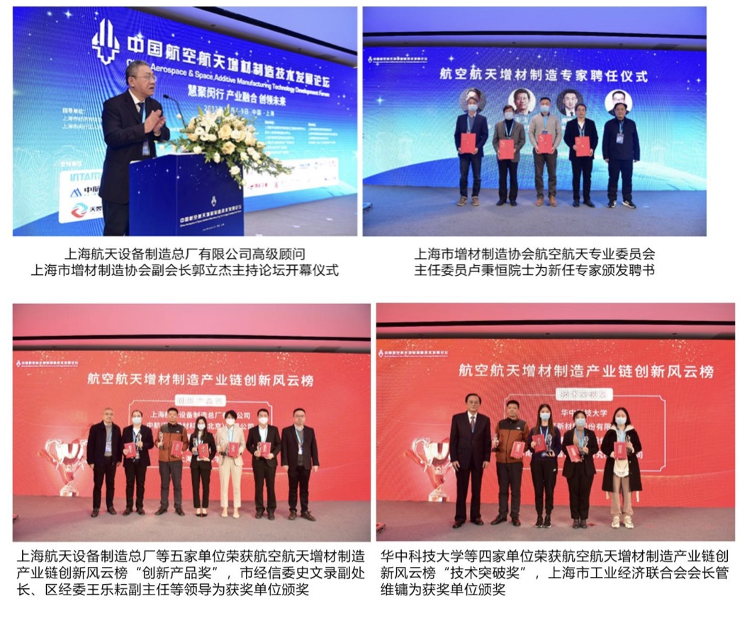 論壇開幕期間還舉行了上海市增材制造協會航空航天專業委員會專家聘任儀式和航空航天增材制造產業鏈創新風云榜頒獎儀式。