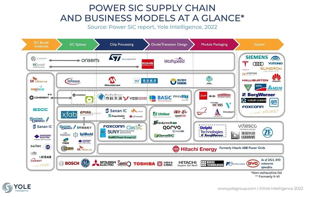 例如,"中國企業在SiC襯底、外延片和封裝方面都有很好的定位"。SiC器件制造 "被認為是下一輪競爭的關鍵步驟,"她說。Dogmus預計主要的IDM將建立大規模的器件產能。"這是一個誰在價值鏈中占據更高份額的問題"。