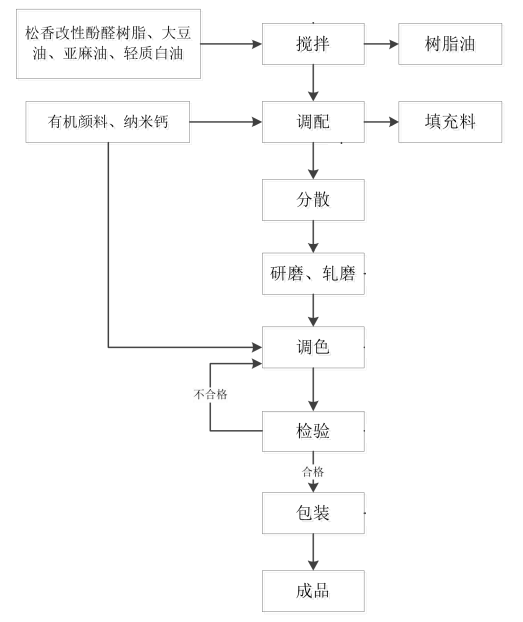 油墨生產的原料主要為樹脂物料(松香改性酚醛樹脂等)、有機顏料、納米碳酸鈣、大豆油、亞麻油、輕質白油等。