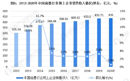 2012-2020年中國油墨行業規上企業銷售收入情況