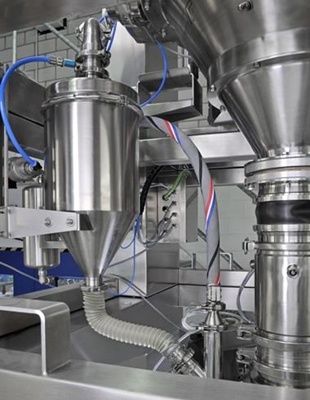 整合粉碎、篩分、定量給料、分裝功能的Profilling分裝系統這條生產線可以實現將從上游設備如干燥機中出料的大塊、團聚的物料粉碎、篩分然后定量給料并最終分裝。由Frewitt設計制造的Profilling分裝系統可以一次性滿足上述所有需求,并可以快速的適應于任何生產環境中。粉碎最細可達50 μm,可以采用粉碎系統或者專門的定量給料系統進行給料。分裝模塊適用于各種不同形狀材質的容器,精度可達±10g。