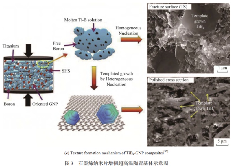 石墨烯的引入增加了壓坯的均勻性和致密性,同時石墨烯片(GNPs)的包裹機制會明顯抑制晶粒生長,這種機制及石墨烯納米片與晶粒間的相互作用共同導致裂紋抑制機制,從而實現了對超高溫陶瓷基體的增韌作用。