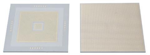 隨著5G的發(fā)展,高速處理大容量數(shù)據(jù)的需求不斷增加,高性能計(jì)算機(jī)群(High Performance Computing,簡(jiǎn)稱(chēng)HPC)作為高性能數(shù)據(jù)處理的解決方案,被各個(gè)領(lǐng)域的公司和組織使用。現(xiàn)在,高性能計(jì)算機(jī)群(HPC)器件的基板材料主要使用有機(jī)材料,但隨著IC芯片・Si轉(zhuǎn)接板的大型化的推進(jìn),為了確保一次封裝時(shí)以及一次封裝后的可靠性,縮小與基板材料的熱膨脹系數(shù)差異變得非常關(guān)鍵。京瓷開(kāi)發(fā)的低熱膨脹陶瓷基板材料GL570,熱膨脹系數(shù)與Si接近,同時(shí)又具有高剛性,是適用于高性能計(jì)算機(jī)群(HPC)中大型化IC芯片或Si轉(zhuǎn)接板的一次封裝,且能確保可靠性的材料。