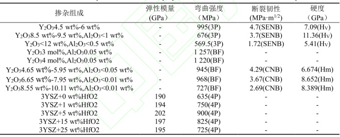 不同釔含量氧化鋯陶瓷的力學性能研究對比