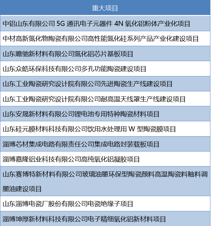 其中,產業項目411個、城市建設項目99個,項目涉及醫藥、新能源汽車、新材料產業、互聯網應用、物流、半導體芯片、光伏電池等等,涉及先進陶瓷項目如下表。