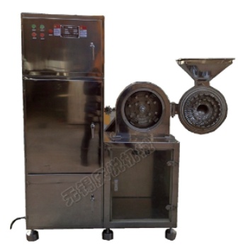 工作原理:利用活動齒盤和固定齒盤間的相對高速運轉,使被粉碎物經齒盤沖擊、摩擦及物料彼此間碰撞而獲得粉碎。粉碎物可直接從磨腔中排出,粒度大小由更換不同目數的篩網決定。本機結構簡潔、堅固,運轉平穩,粉碎物料快速、均勻,效果良好。本機全為不銹鋼材料制作,機殼內部(粉碎槽)所有齒槽經精密機加工從而達到表面平滑,易于清理,改變了普通粉碎機內壁粗糙、易積粉、難清理的現象,使食品、藥品、化工等生產符合GMP要求。