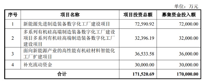 中國粉體網訊 1月20日,金銀河(300619)發布募集說明書(申報稿),公司本次向特定對象發行募集資金總額不超過17億元,擬用于新能源先進制造裝備數字化工廠建設項目、多系列有機硅高端制造裝備數字化工廠建設項目及面向新能源產業的高性能有機硅材料智能化工廠擴建項目和補充流動資金項目。