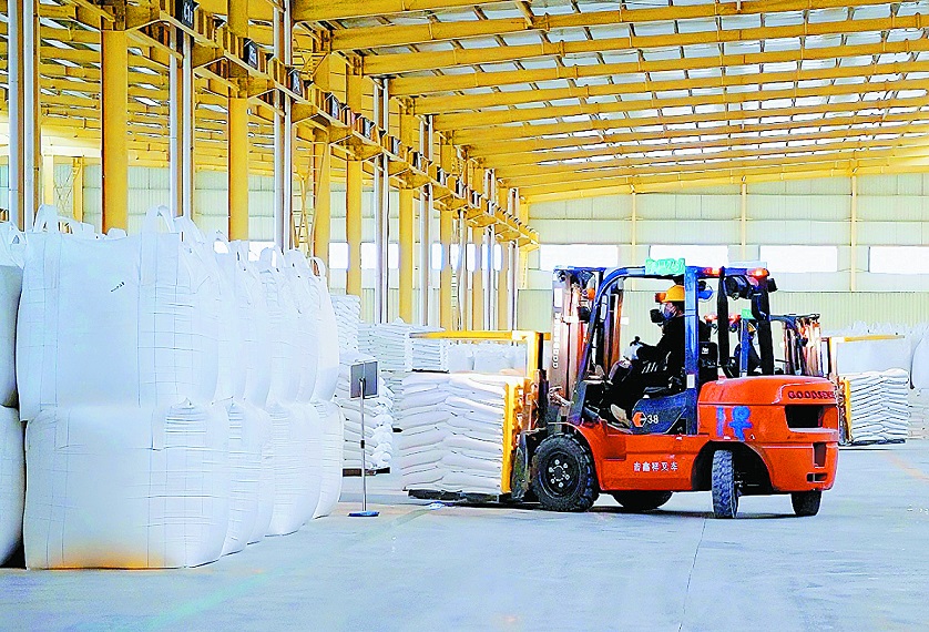 此外,這個(gè)車間還裝備了全自動(dòng)碼垛機(jī)器人系統(tǒng),能對(duì)產(chǎn)品包裝袋進(jìn)行順序碼垛,相對(duì)于人工操作,機(jī)器人碼垛系統(tǒng)速度快、效率高、粉塵小、安全性高且全天候運(yùn)行,是該公司智能化、自動(dòng)化、無(wú)人化車間的重要一環(huán)。在現(xiàn)場(chǎng),偌大的粉體生產(chǎn)車間整潔明亮,未見(jiàn)粉塵飛揚(yáng)。生產(chǎn)車間與超2萬(wàn)平方米的倉(cāng)儲(chǔ)間無(wú)縫銜接,除了數(shù)輛叉車有條不紊地來(lái)回穿梭,運(yùn)輸粉體產(chǎn)品,操作人員只見(jiàn)寥寥幾人。