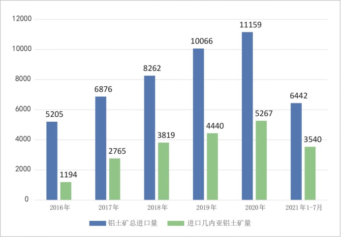 近幾年幾內亞成為我國第一大鋁土礦進口國(萬噸)