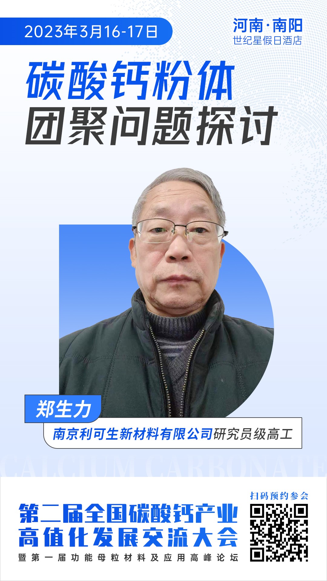 3月16~17日,第二屆全國碳酸鈣產業高值化發展交流大會將在河南·南陽舉行,屆時南京利可生新材料有限公司技術總監鄭生力將在大會上做《碳酸鈣粉體團聚問題探討》主題報告,與鈣粉深加工企業面對面交流粉體團聚問題,結合生產裝備和助磨劑講解分散技術,解答大家在實際生產中遇到的疑難問題。