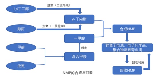目前NMP的生產主要分為合成NMP和回收NMP兩大類。