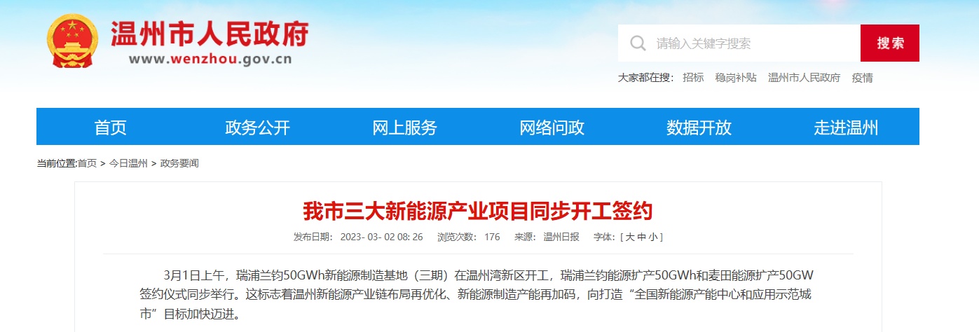 參考來源:溫州市人民政府官網、瑞浦蘭鈞能源