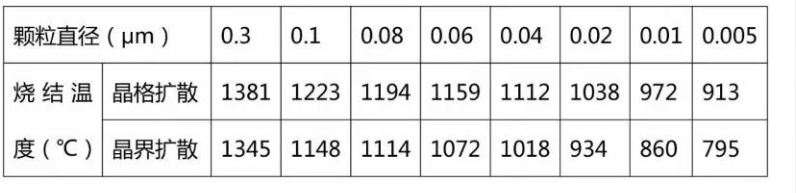 粉體顆粒尺寸與燒結溫度的關系
