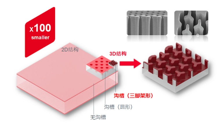 村田硅電容器的3D結構是利用干法蝕刻技術的BOSCH工藝。BOSCH工藝是硅加工特有的技術,它可以讓通過SF6氣體進行蝕刻和通過C4F8形成保護膜高速重復,從而實現高縱橫比蝕刻。