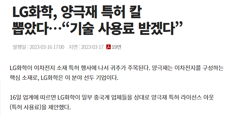 LG化學在評價其對外許可(正極材料)專利時表示:“不能確認是否向特定企業提議許可”,“知識產權擁有者行使正當權利是理所當然的權利和義務”。同時還強調:“計劃強化并積極推進多種知識產權業務!