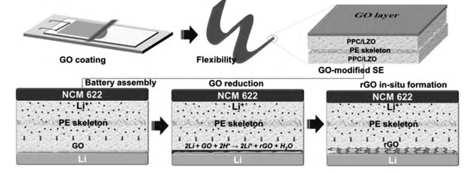 圖1 電解質與鋰負極間原位形成rGO夾層示意圖