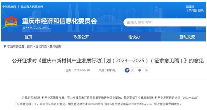 中國粉體網訊 為加快推進新材料產業發展,為材料工業轉型升級提供新動力,近日,重慶市經濟和信息化委員會公開征求對《重慶市新材料產業發展行動計劃(2023—2025)(征求意見稿)》的意見(以下簡稱“計劃”)。計劃提出,到2025年,基本構建起產業結構合理、研發水平較高、產業規模持續提升的現代新材料產業體系,全市新材料產業產值突破2000億元。