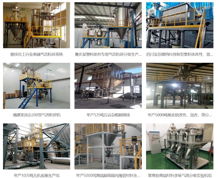 公司研制設備可以穩(wěn)定生產(chǎn)0.5-25微米的微粉,也可生產(chǎn)20-200目的微粒。目前廣泛用于非金屬礦粉(1-74微米)、磨料微粉(符合國家標準、日本標準、歐洲標準)、精細化工、粉末冶金(惰性氣體保護)、鋰電池、新能源、復印機打印機碳粉、化工涂料、塑料填充、反光材料、醫(yī)藥食品(高純物料)、保健品、新型材料等領域。