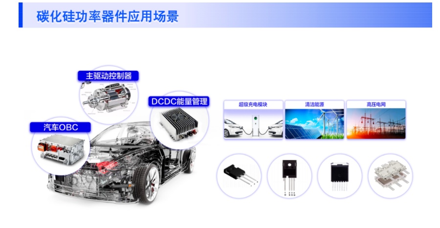 目前碳化硅主要應(yīng)用于汽車、清潔能源、工業(yè)、交通運(yùn)輸、通信等領(lǐng)域,主要產(chǎn)品形式有新能源車電機(jī)驅(qū)動系統(tǒng),車載充電系統(tǒng)、DC/DC變換器、非車載充電裝置;光伏逆變器;輸電換流閥,電力電子變壓器;以及牽引變流器等。碳化硅MOSFET器件可以支持新能源汽車更高的用電效率與更精簡與低成本的用電解決方案;達(dá)到更高的續(xù)航里程,實現(xiàn)更快的充電速度,并且進(jìn)一步降低車身重量,實現(xiàn)更明顯的效率優(yōu)勢。然而由于其研究技術(shù)要求和生產(chǎn)成本均較高,目前在市場上的占有率仍處于較低水平。