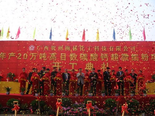 自治區級重大項目梅林化工年產20萬噸高目數碳酸鈣超微細粉項目昨天上午開工。該項目由臺商投資,總投資額達1.2億元。它采用世界領先水平的PLC電腦全自動生產線,生產高質量的碳酸鈣超微細粉。這將一舉填補我區乃至祖國大陸在這一生產領域的空白。