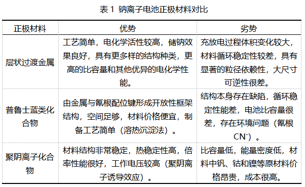 正極材料的研究決定了鈉離子電池的產業化進程和最終性能。目前研究的鈉離子電池正極材料主要分為層狀氧化物、普魯士藍類化合物和聚陰離子類化合物等。三類正極材料都已經實現商業化生產,其中層狀氧化物因制備方法簡單、技術轉化容易、能量密度高、可逆比容量高以及可逆的鈉離子脫/嵌能力等優點,成為最富有前景的鈉電正極材料。國內寧德時代和中科海納等代表企業都選擇層狀氧化物作為鈉離子電池正極材料。