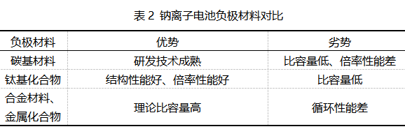 同樣地,開發廉價和高性能的負極材料也是推動鈉離子電池的產業化不可或缺的一部分,目前鈉離子電池負極材料研究主要集中于炭材料及部分非炭材料,包括碳基材料(硬碳、軟碳)、鈦基化合物、有機材料以及合金材料等。硬碳材料具備儲鈉比容量較高,儲鈉電壓較低,循環性能較好等諸多優勢,被認為是推動鈉離子電池實用化進程的關鍵負極材料。