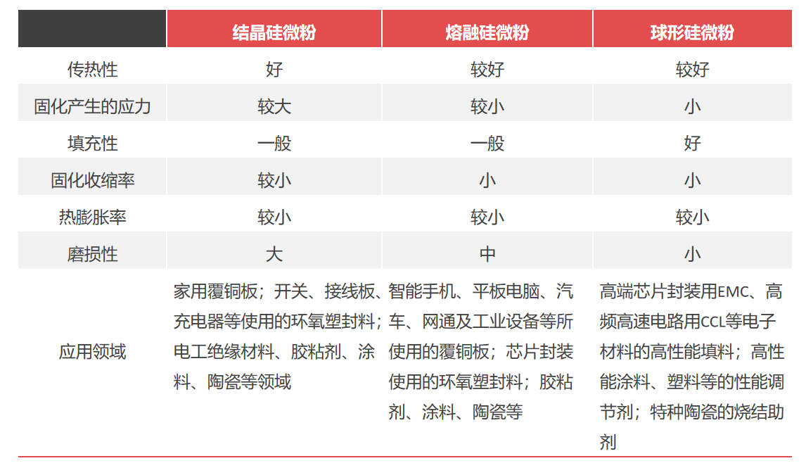 不同種類的硅微粉性能及應用對比