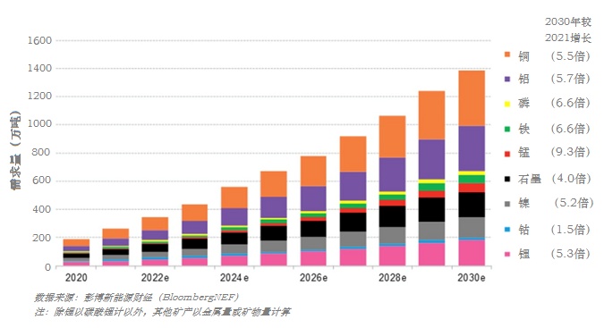 彭博新能源財經(BloombergNEF)預計,到2030年電池礦產需求仍將保持強勁增長,石墨需求量將增長4倍。基準礦物情報(BMI)預計,隨著車輛電動化持續,以及新發現減少,石墨市場在2040年缺口將達到800萬噸;為彌補如此大的缺口,礦業行業需要在未來18年內將現有產量提高8倍。