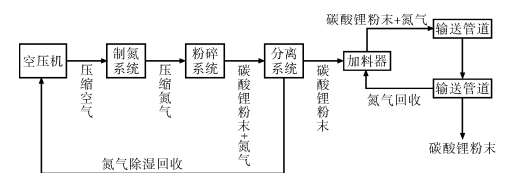 另外,在鋰電池原料碳酸鋰的整個生產工藝流程中,閉式氮氣氣力輸送系統屬于關鍵單元,按功能可劃分為控制系統、輸送管道以及循環系統等。閉式氮氣氣力輸送系統中,各部分實現不同的功能,需基于統一配合要求實現其整體功能。